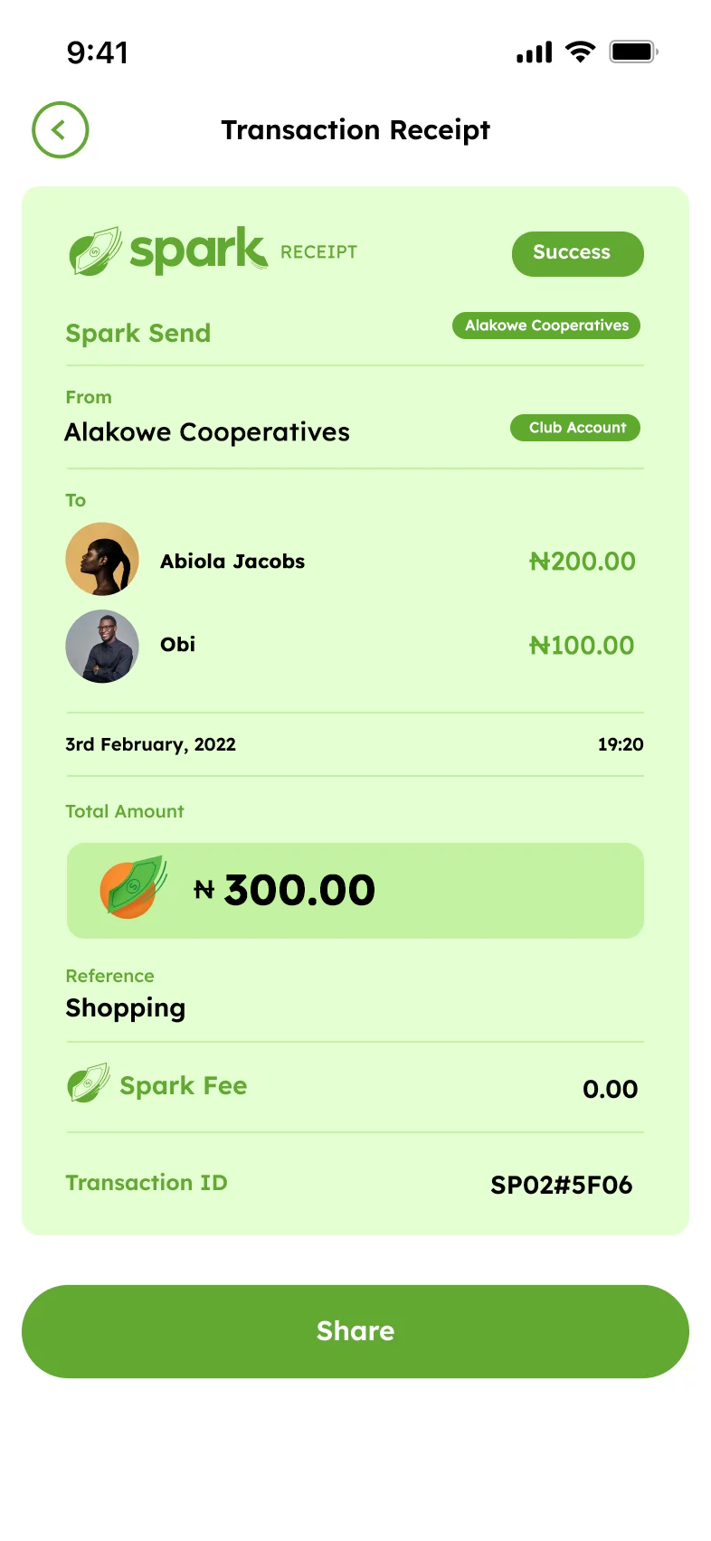 Spark is built for Groups. All Groups get a free Club Account and can do free transactions.